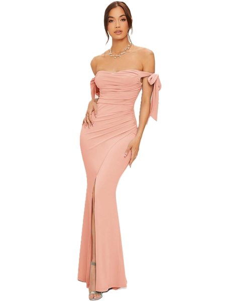 • Off Shoulder Split Thigh Sequin Formal Dress