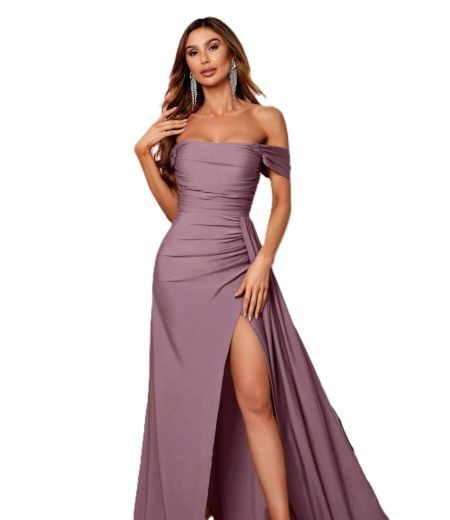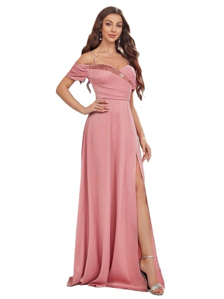 Sequin High Slit Off Shoulder Formal Evening Gown