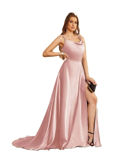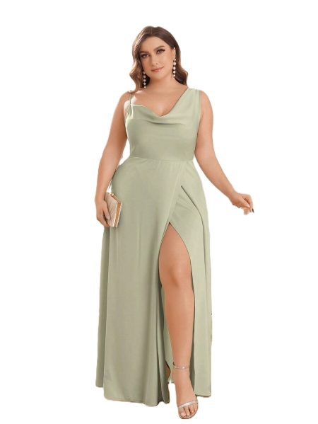• Plus Size Cowl Collar Elegant High Slit Dress