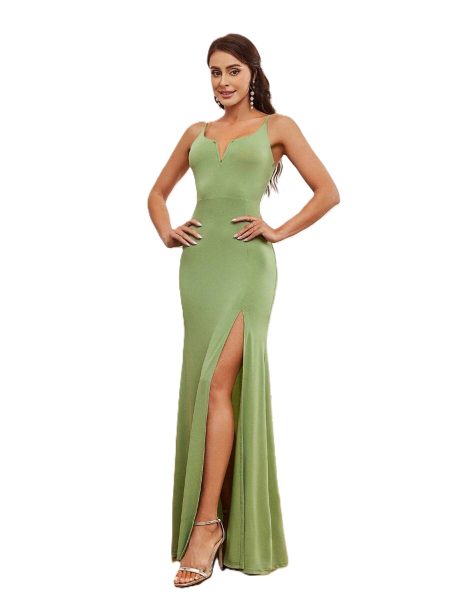 Column Spaghetti V Neck Beaded Backless Prom Party Dress
