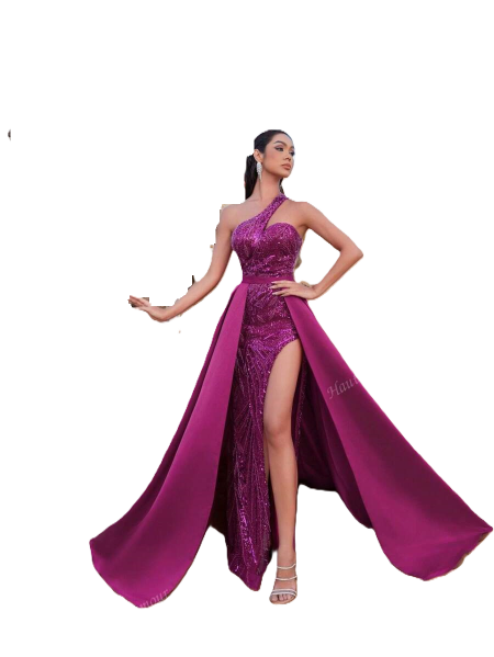 Gorgeous One Shoulder Satin Overlay Beaded Formal Dresses